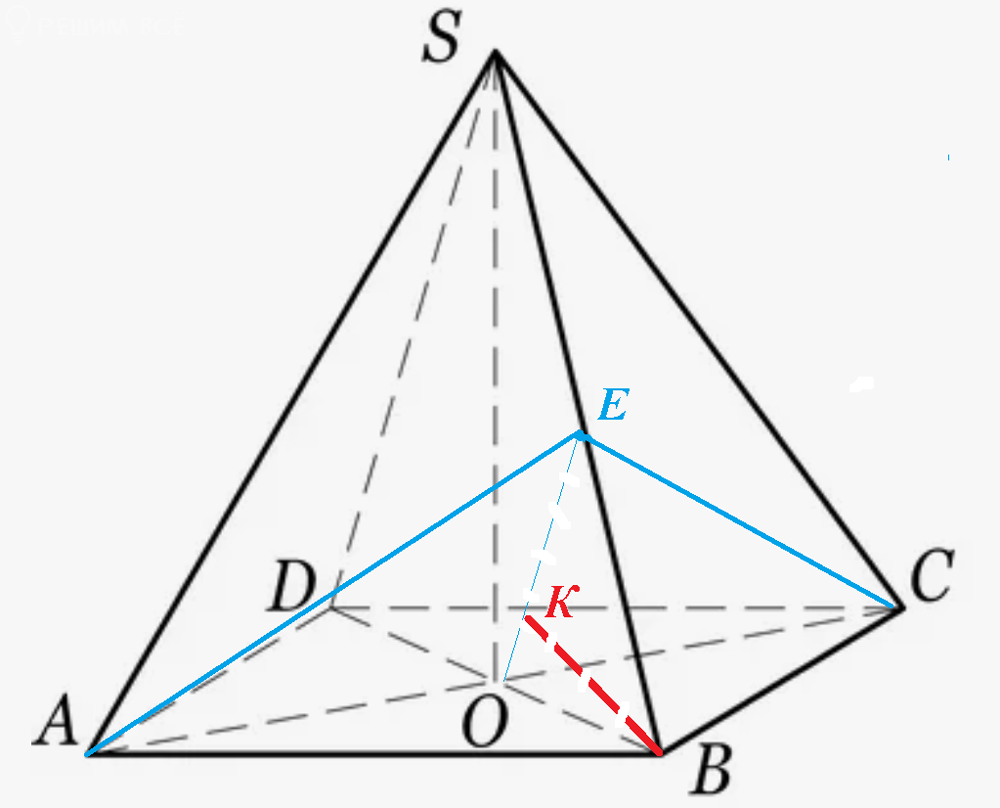 В правильной пирамиде боковые ребра равны сторонам основания, поэтому вершина S находится на оси, проходящей через O, на высоте h, где