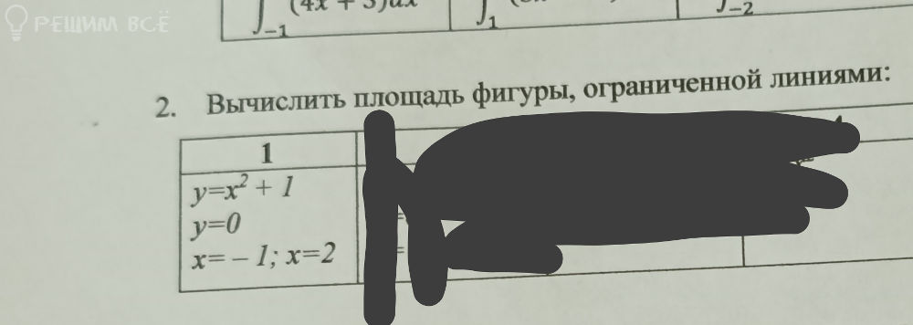 – Замкнутая фигура — криволинейная трапеция ABCD, расположена над осью ОХ между x = –1 и x = 2 и под графиком y = x² + 1.
