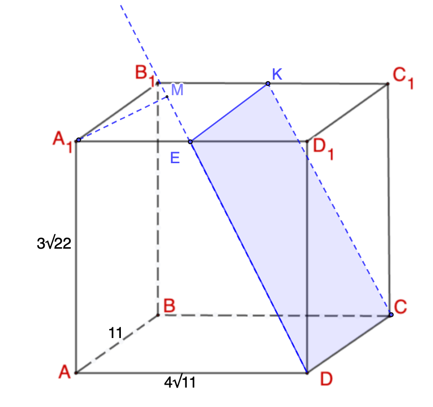 АВ = 11; AD = 4sqrt(11); АА1 = 3sqrt(22)