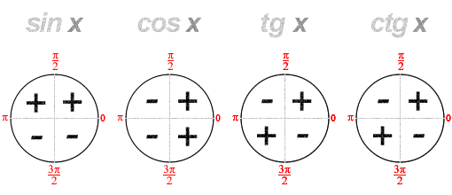 Знаки тригонометрических функций.