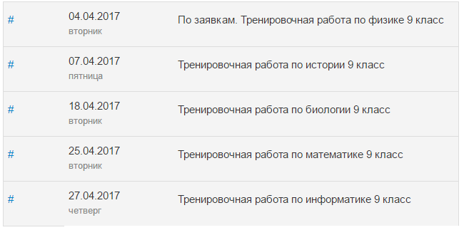 Расписание диагностических работ СтатГрад 2016/2017 для 9 класса (ОГЭ)