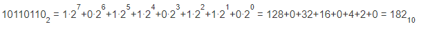 Переведем двоичное число 10110110 в десятичное: