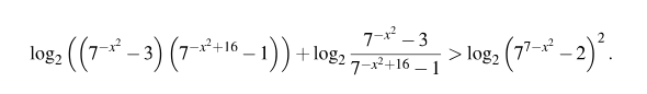 [block]log2((7^(-x^2)-6)(7^(-x^2+9)-1)) + log2 (7^(-x^2)-6)/(7^(-x^2+9)-1) > log2(7^(3-x^2)-5)^2[/block]