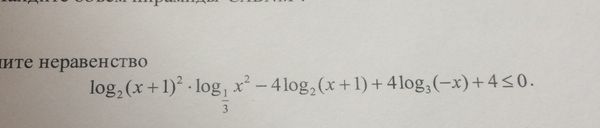 log2(x+1)^2*log(1/3)x^2 - 4log2(x+1) + 4log3(-x) + 4 ≤ 0