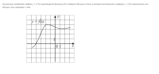 На рисунке изображён график y = f'(x) произведной функции f(x). Найдите абсциссу точек, в которой касательная к графику y = f(x) параллельна оси абсцисс или совпадает с ней.