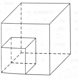 Найдите объем многогранника, изображенного на рисунке (все двугранные углы прямые).