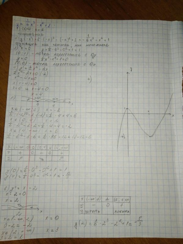 6. найти интервал выпуклости, интервал и точки перегиба