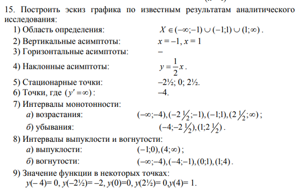 Ислледование функций одной переменной: область определения, асимптоты, экстремумы, монотонность, точки перегиба