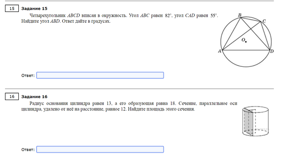 16. Угол A четырёхугольника ABCD, вписанного в окружность, равен 58° (см. рис. 16). Найдите угол C этого четырёхугольника. Ответ дайте в граду-