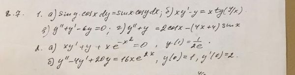 2. Найти частные решения дифференциальных уравнений, удовлетворяющих начальным условиям: