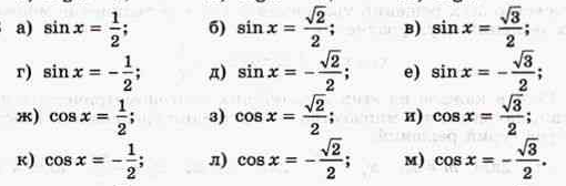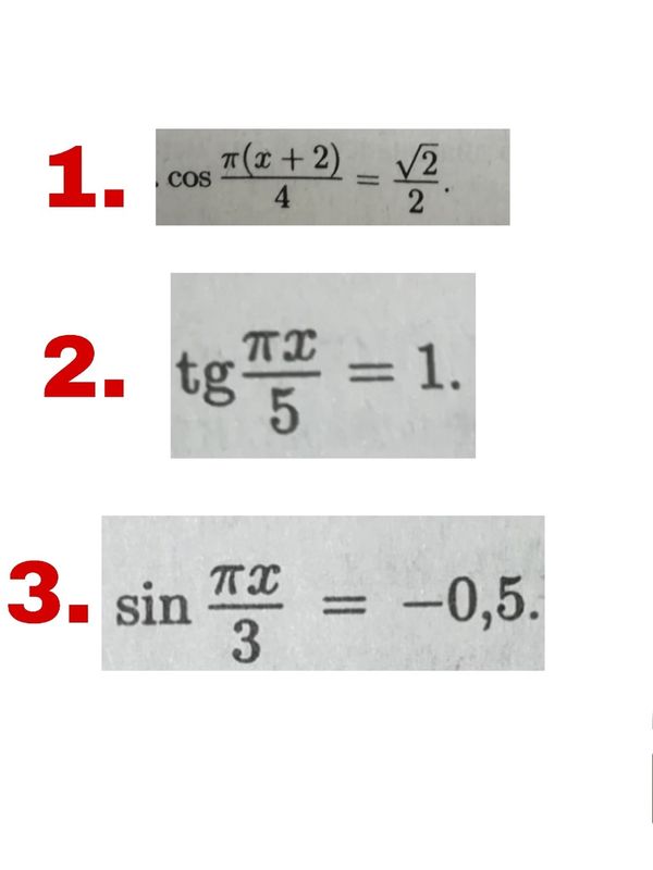 1. Решите уравнение: а) sinx=-1; б) cosx=√2/2; в) tgx=-√3.