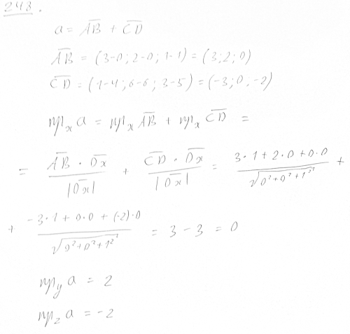 Найти проекции вектора a на оси координат, если a=vector{AB}+vector{CD}, A(0;0;1), B(3;2;1), C(4;6;5) и D(1;6;3).