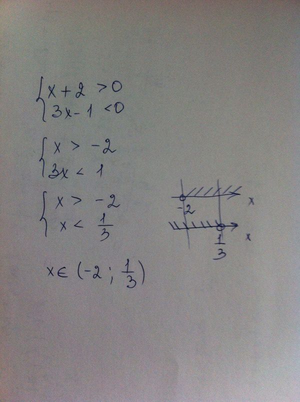 Дана система неравенств {x+2 > 0 {3x-1 <...