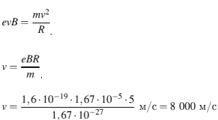 В однородном магнитном поле индукция которого равна 1,67*10^(-5) ТЛ протон движется перпендикулярно вектору магнитной индукции В по окружности радиусом 5 и определите скорость протона