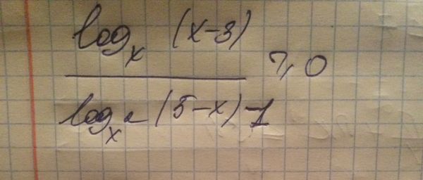 Решить уравнение (log(x)(x-3))/(log(x^2)(5-x)-1) больше или равно 0