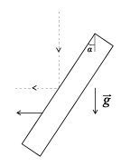 Массивная плита движется горизонтально со скоростью 4 м/c. Шарик, летевший вертикально, после упругого удара о плиту отскакивает горизонтально в направлении движения плиты (см. рис.). Поверхность плиты наклонена к вертикали под углом альфа, тангенс которого равен 0.3. Найти скорость шарика перед ударом.