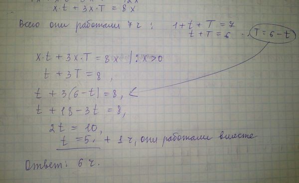 Отец и сын должны вскопать огород. Производительность работы у отца в три раза меньше, чем у сына. Работая вместе, они могут вскопать огород за 3 часа. Однако вместе они проработали только один час, потом некоторое время работал один отец, а заканчивал работу один сын. Сколько времени в общей сложности проработал отец, если вся работа на огороде была выполнена за 7 часов?