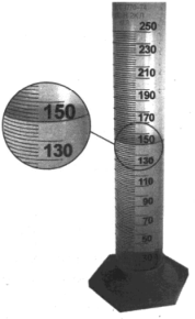 Для проведения опыта ученик налил воду в мензурку. Шкала мензурки проградуирована в миллилитрах (мл). Погрешность измерений объема равна цене деления шкалы мензурки. Чему равен объем налитой учеником воды? Запишите ответ в виде (___±___) мл