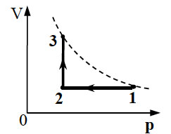 10 моль идеального одноатомного газа охладили, уменьшив давление в 3 раза. Затем газ нагрели до первоначальной температуры 300 К (см. рисунок). Какое количество теплоты сообщено газу на участке 2 - 3?