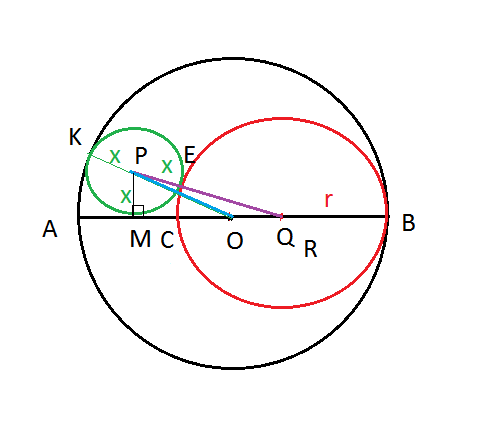 Р(Δ PQO)=PQ+QO+PO=R-x+R-r+x+r=2R