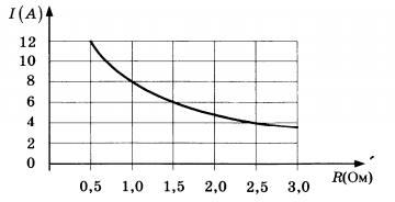 Мощность отопителя в автомобиле регулируется дополнительным сопротивлением, которое можно менять, поворачивая рукоятку в салоне машины. При этом меняется сила тока в электрической цепи электродвигателя — чем меньше сопротивление, тем больше сила тока и тем быстрее вращается мотор отопителя. На рисунке показана зависимость силы тока от величины сопротивления. На оси абсцисс откладывается сопротивление (в Омах), на оси ординат — сила тока в Амперах. Ток в цепи электродвигателя уменьшился с 8 до 4 Ампер. На сколько Омов при этом увеличилось сопротивление цепи?