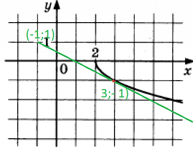 Можно написать уравнение касательной как уравнение прямой, проходящей через две точки (-1;1) и (3;-1).