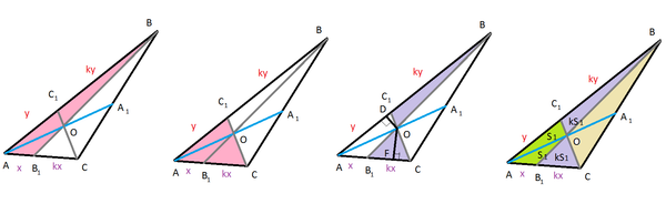 S( ΔABB1)=S( ΔACC1)=((1+k)•x•y•sin∠A)/2.