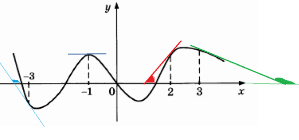 В точках х=-3 и х=3 касательные образуют тупой угол с [b]положительным[/b] направлением оси Ох.