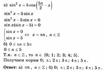 а) Решите уравнение sin^2x = 5cos(5Pi/2 - x) б) Найдите все корни этого уравнения, принадлежащие промежутку [0; 5Pi]