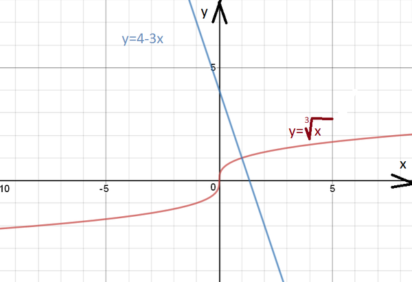Строим график у=∛х и у=4-3х