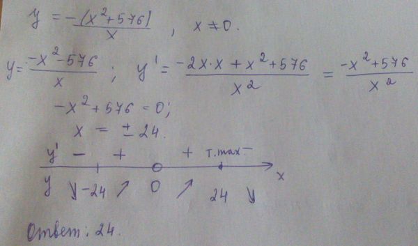 Найдите точку максимума функции y=-(x^2+576)/x