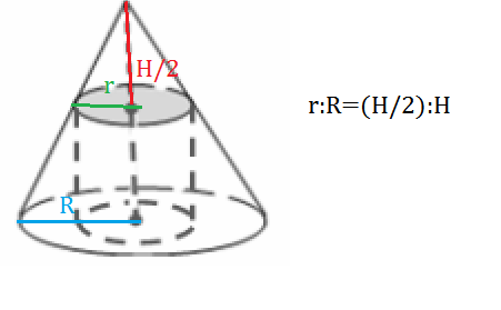 r:R=(Н/2):H=1:2⇒R=2r
