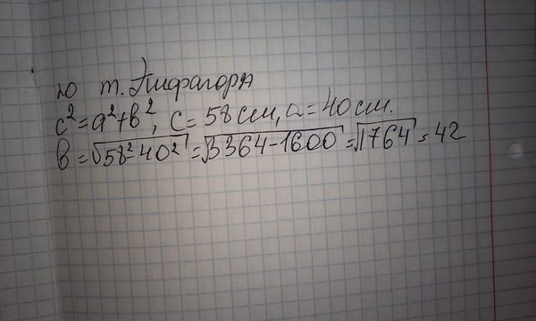 Диагональ прямоугольного телевизионного экрана равна 58см, а высота экрана 40см. Найдите ширину экрана.