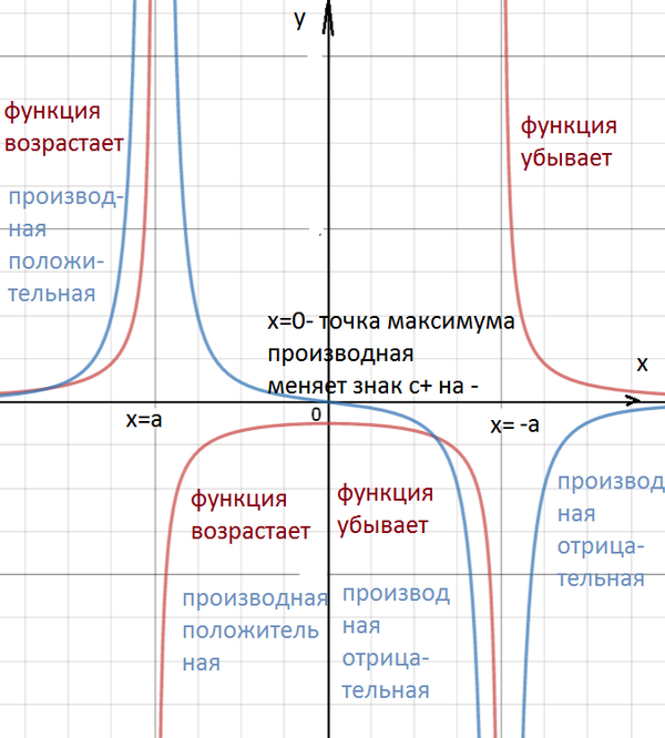 Производная также не определена в точках х=-а и х=а.