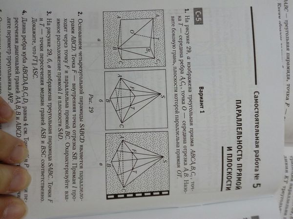 3) На рисунке 29, б, в изображена треугольная пирамида SABC. Точки F и Т — точки пересечения медиан граней ASB и BSC соответственно Докажите, что FT\\ Л5С.