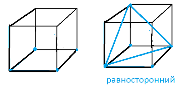 В) Какое наибольшее количество вершин куба можно покрасить в синий цвет так, чтобы среди синих вершин нельзя было выбрать три, образующие равносторонний треугольник?
