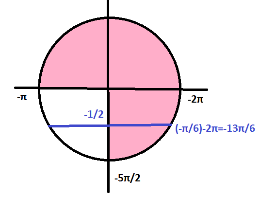 x=(-π/6)+2πk, k∈Z или x=π-(-π/6)+2πn, n∈Z