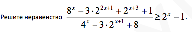 Решите неравенство (8^x-3*2^(2x+1)+2^(x+3)+1)/(4^x-3*2^(x+1)+8) больше или равно 2^x-1