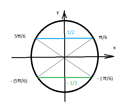 (π/6)+2πk, k∈Z и (5π/6)+2πn, k∈Z.