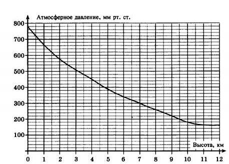 На графике изображена зависимость атмосферного давления (в миллиметрах ртутного столба) от высоты над уровнем моря (в километрах). Определите по графику, на какой высоте атмосферное давление равно 660 мм рт. ст. Ответ дайте в километрах.