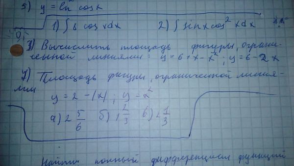 3) Вычислите площадь фигуры, ограниченной линиями: y=6+x-x^2; y=6-2x