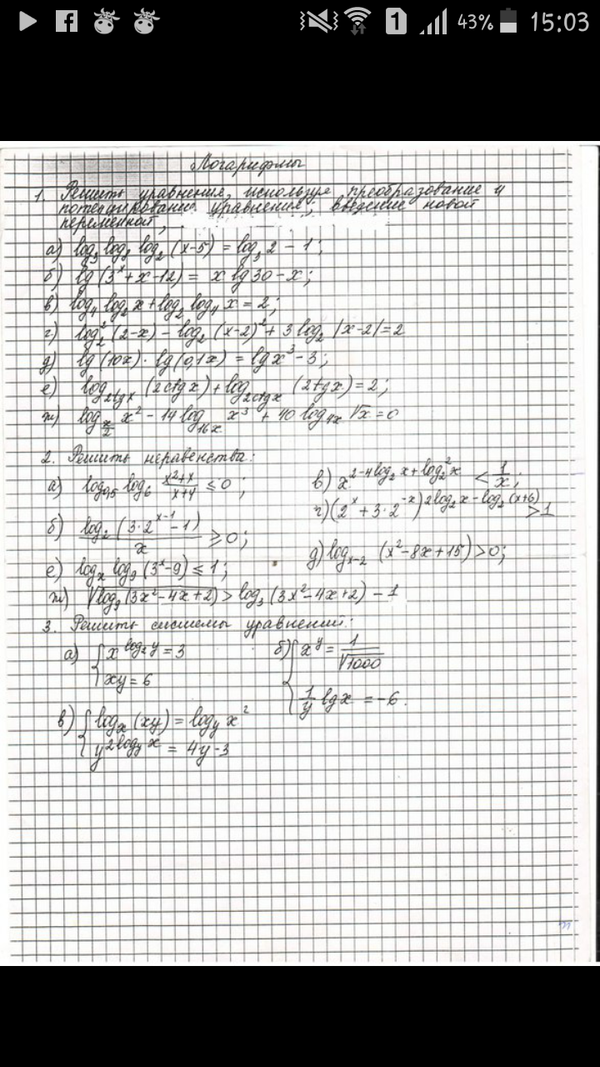 ж) Замена переменной log_(3)(x^2-3x+4)=t;