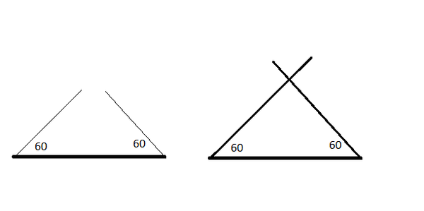 Постройти треугольник по стороне а =10 и двум углам 1=60° и второй угол 2=60°