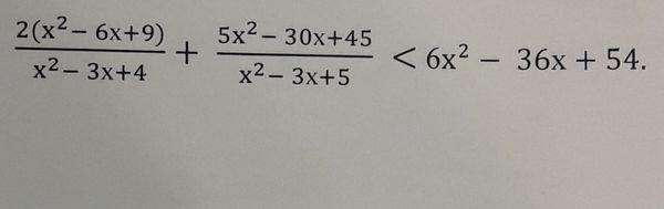 (x^2-6x+9)*(2/(x^2-3x+4)+5/(x^2-3x+5)-6) < 0