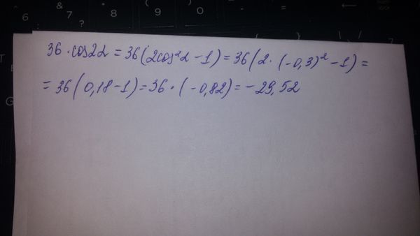 Найти 36cosa, если cosa=-0,3...