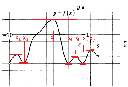 На графике изображен график функции у=f(x), определенной на интервале (-10;2). Найдите количество точек, в которых касательная к графику функции параллельна прямой у=-20.