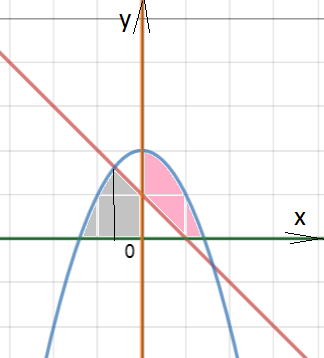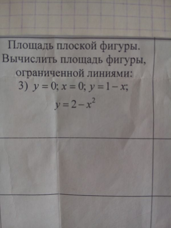 Фигура, площадь которой требуется вычислить, ограничена сверху графиком функции у=2-x^2 и у=1-х, снизу отрезком