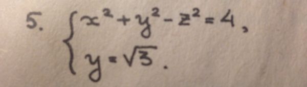 system{x^2+y^2-z^2=4; y=sqrt(3)}