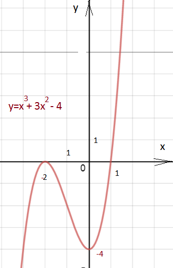 у(-2)=(-2)^3+3*(-2)^2-4=-8+12-4=0