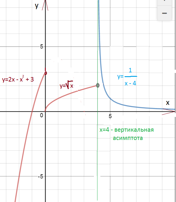 Прямая х=4 - вертикальная асимптота.
